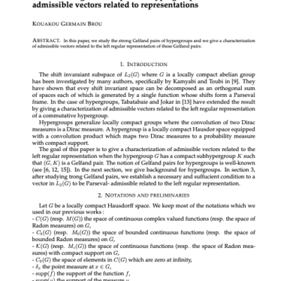 On the Strong Gelfand pairs of hypergroups and admissible vectors related to representations